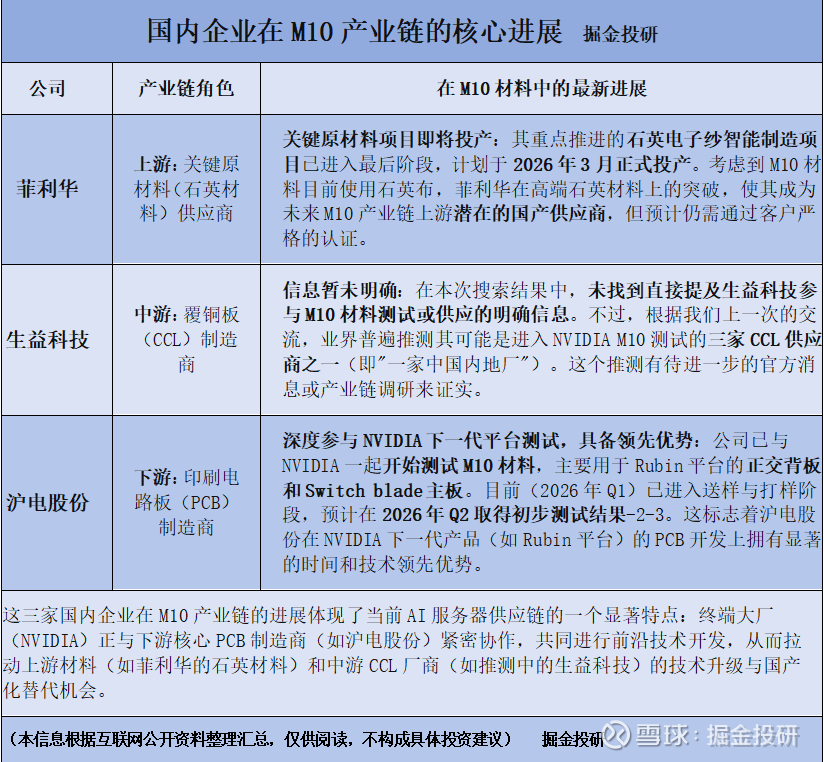 总结一下时间线: 2026年Q1是送样测试期,Q2是测试结果出炉的关键窗口,如果一切顺利,2027年下半年M10材料将大规模量产。这些都需要花时间和精力盯。