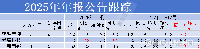 $光库科技(SZ300620)$ :3月23日晚发布2025年年报,营业收入14.74亿元/48%;归母净利润1.77亿元/164%。12.31日预告1.69-1.82/152-172%,高于预告中值。