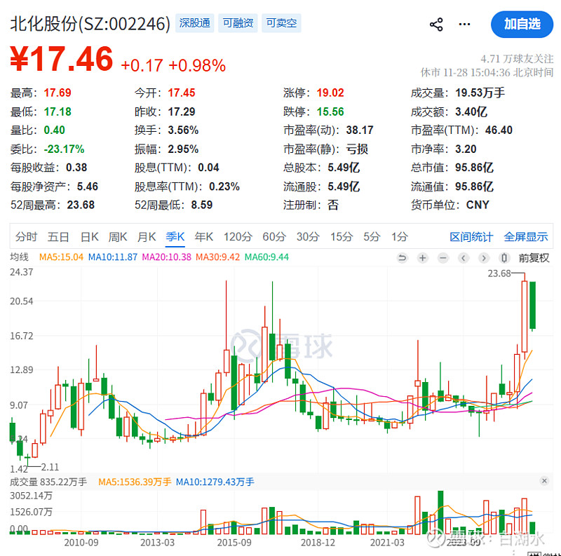 前有北化股份,现有江南化工,虽然名字叫法不一样,其实是一北一南两个炸药化工公司。