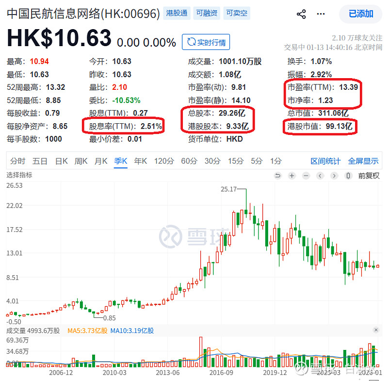 总股本是29亿,包括内资股20亿和港股上市流通的股本是9.33亿这两部分组成。现在的股价是10.7港币,所以公司的总市值是300亿港币,流通市值是100亿港币。