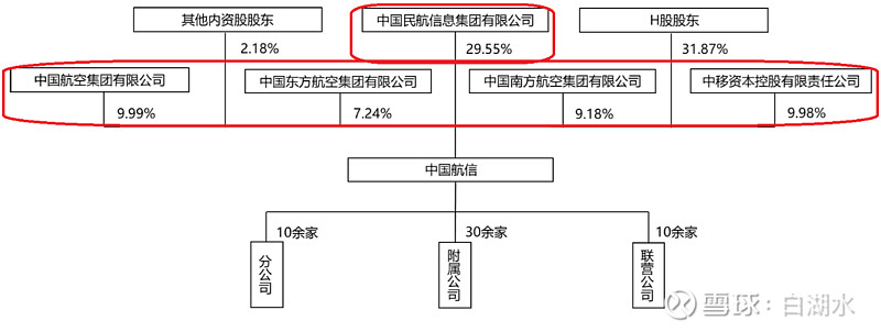 公司的股权结构如下:大股东是央企中国航信占比30%,三大航空(国航、东航、南航)是重要投资者,然后中国移动占比10%也是重要投资者,这些都是内资股,真正流通的是在港股发行和上市的H股,H股占比32%。