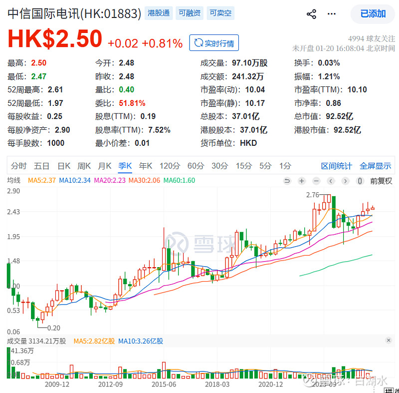 公司的其它业务包括漫游、对公司电讯服务、对三大供应商的增值服务等,我都不是太理解,有点技术难度,所以学习了解这个公司的过程中有些心理障碍。这个公司的股息率是最高的,但是从确定性上看,我更倾向于国内的三大运营商,看得见、摸得着、更大更稳。