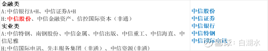 实业类的上市公司中,有关注价值的上市公司如下。干实业不是中信的特长,旗下的实业公司基本上都是收购过来的。