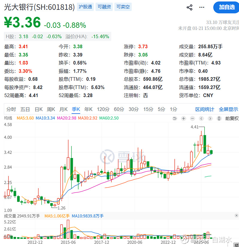 两千亿市值的光大银行