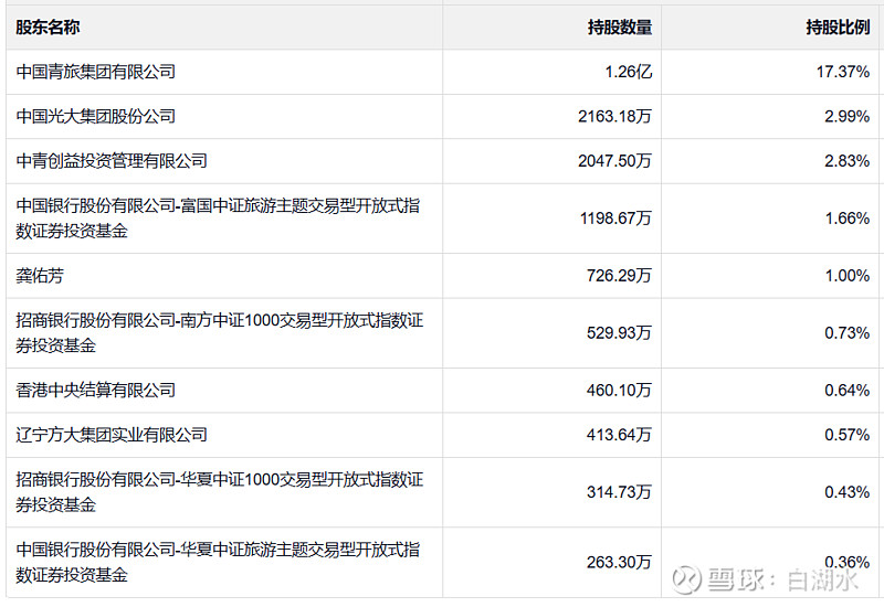大股东中青旅集团原来属于团中央,现在属于光大集团,光大持股比例太低了,不到25%。