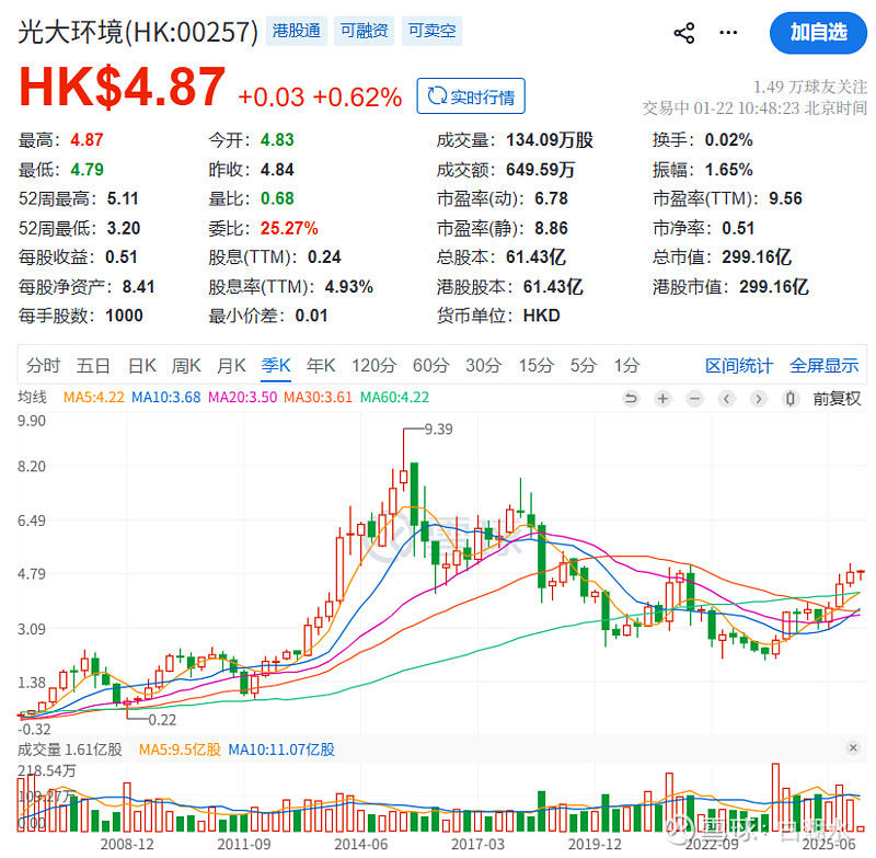 这个上市公司旗下控股两个子公司:中国光大绿色环保、中国光大水务,都不是港股通。