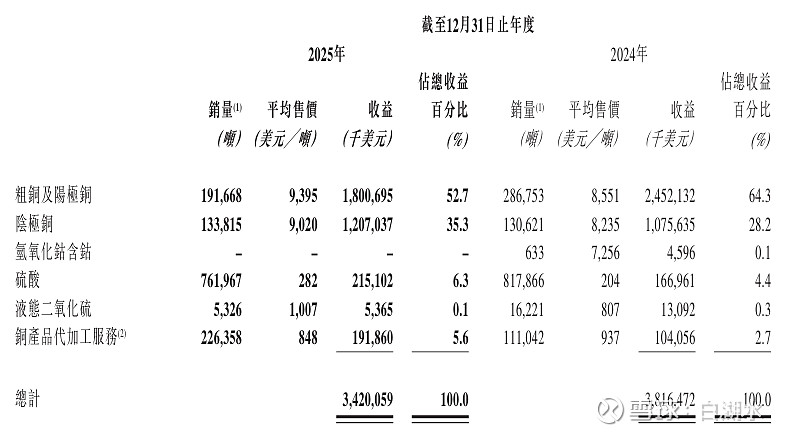 粗铜和阳极铜产量从2024年的28.7万吨减少到2025的19.2万吨,