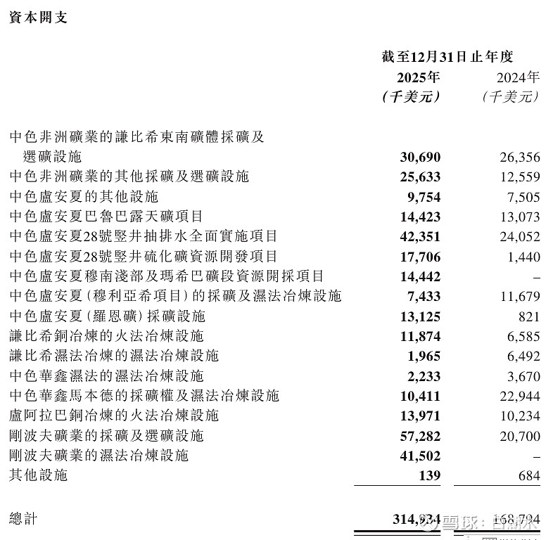 看到这个业绩很失望,大大低于预期。以为会跟其它铜矿股类似,增长20%以上。后来了解情有可原,公司去年不顺利出了两个事故。一个事故是谦比西矿业的西南矿发生了一个井壁脱落事故,死了一个人,公司下半年停产整改,2026-1-1才恢复生产。另外一个事故更加严重,2月份谦比西湿法冶炼厂发生尾矿库泄露事故,导致下游受到污染,停产一年多了到现在还没有恢复生产,而且受到村民的天价赔偿起诉,法庭既没有采纳也没有驳回,仍然悬而未决。
