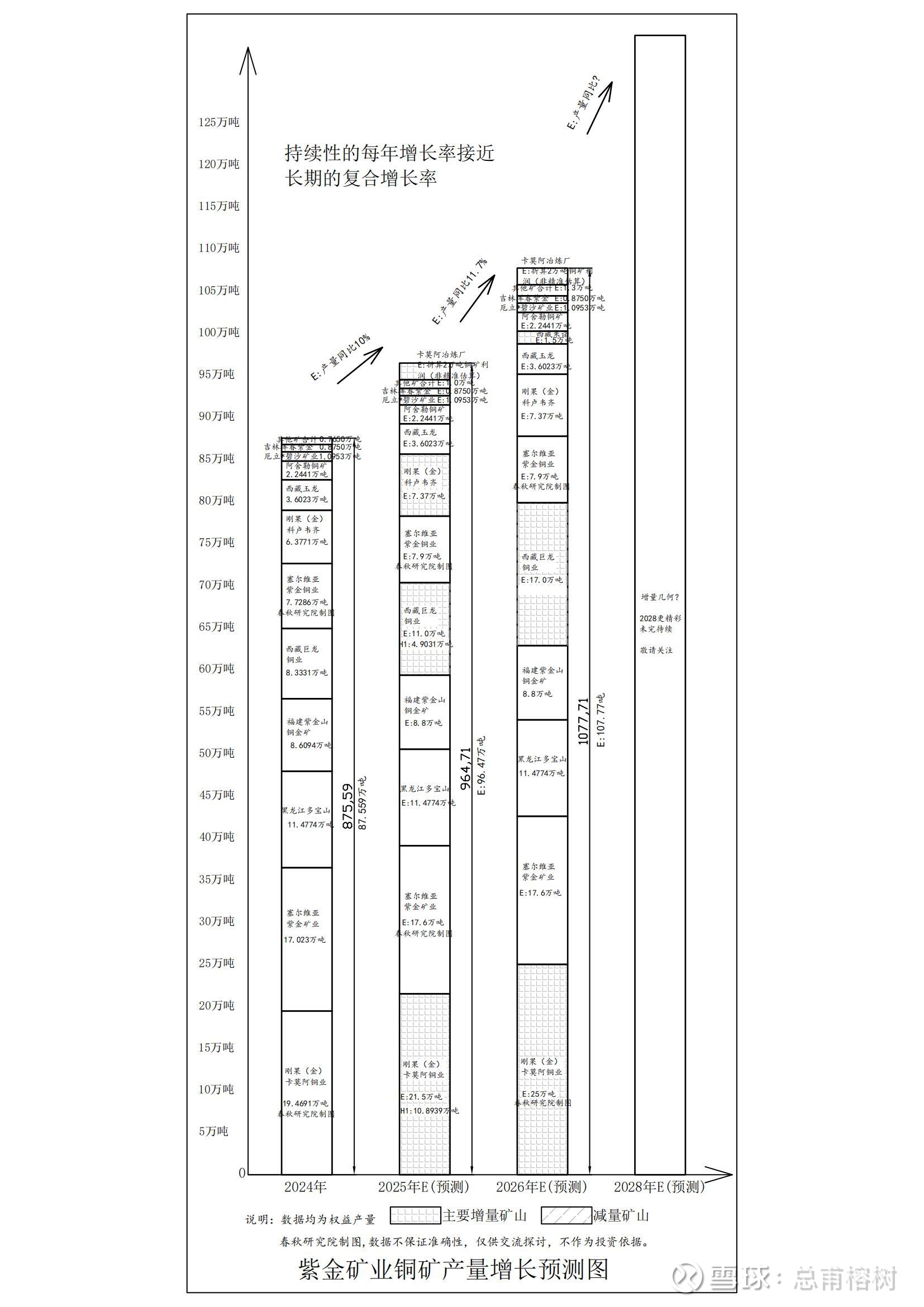 还得看这张今天要分享的紫金矿业铜产量增长分析图: