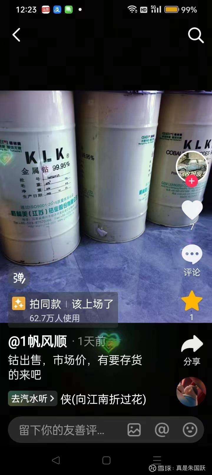 一、金属钴;前期一直在做海鸥股份,对格林美就一般关注,节后国家稀土管控升级,发现大A里还存有一个8元以下的含实实在在稀土产业的股票---格林美,一下子吸引了我的目光,不看不知道,一看吓一跳,这个格林美竟然还是个持有当前最热门的金属钴、镍的大户,就其年产2万吨钴(镍伴生+回收),因成本很低,随着钴今年价格翻倍有余(年初16.34万/吨--10月17日38.9万涨幅惊人的达到138%)远超黄金50%的涨幅,它的利润将会有爆发性的增长几无悬念,而且随着刚果(金)26、27年的配额落地,钴在未来二年供不应求的局面必将维持,原预计年内看40万/吨也许月内就会提前看到。金属能源钴价格飙升给格林美带来的确定性利润至少40个亿,而且这个增长无需格林美额外付出很多,基本就是躺赢!想想格林美去年全年利润10.2亿,今年上半年7.99亿,这个天降馅饼会让格林美未来的业绩靓丽到难以表述。在抖音上看到一个很有趣的视频:“该上场了”背景就是三桶格林美的金属钴,是不是格林美要把去年库存的约1万吨钴兑现了?如真的兑现,那今年的年报业绩就会立竿见影增100%以上。
