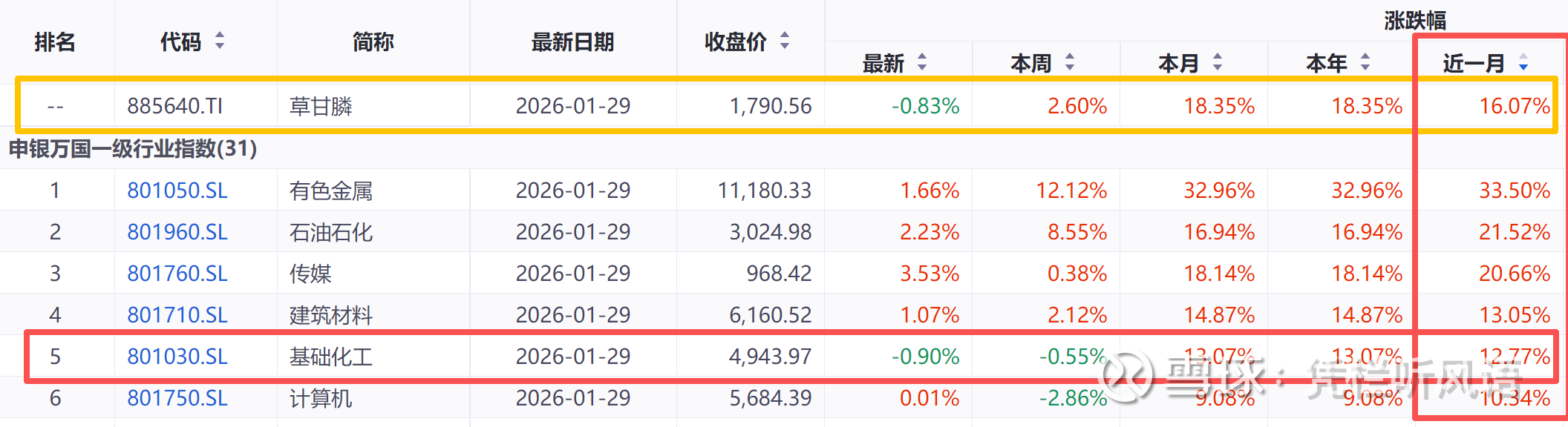 市场最近对化工关注度很高,截至1.29日收盘,基础化工行业涨幅近13%,申万一级31个行业中排名第五。