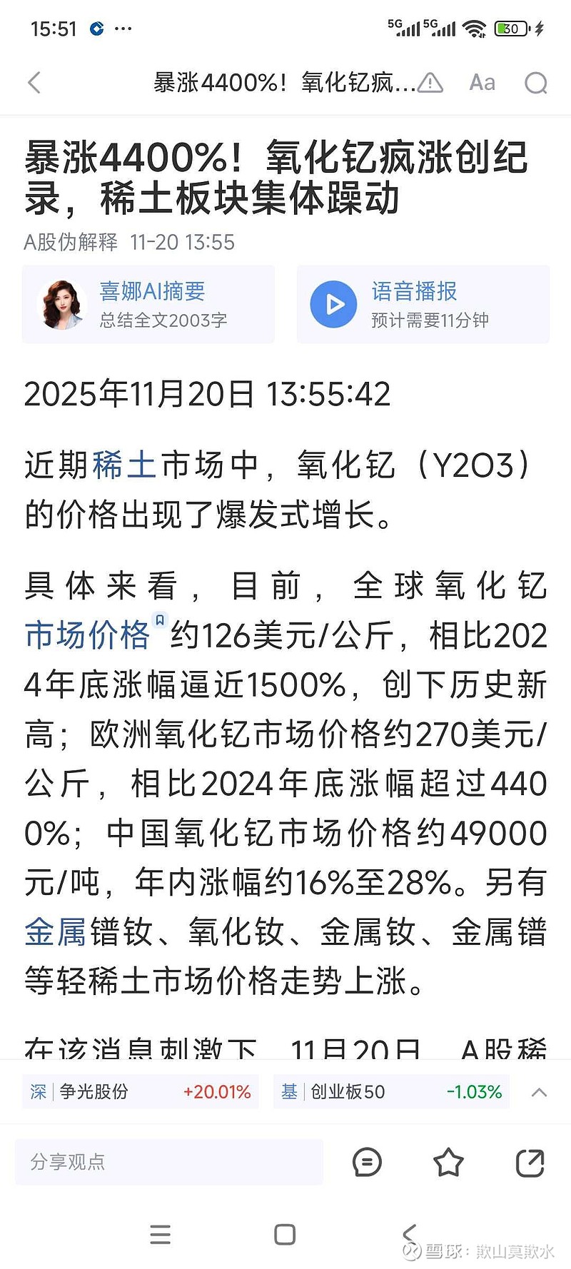 $爱迪特(SZ301580)$ 写实型的小作文,氧化钇是齿科氧化锆材料的核心添加剂,虽然占比不算高,架不住价格涨得猛呀,那请问:国内出口的生产商有没有相关的涨价预期,或是已提价?难道要的是只为占市场不为赚钱那种套路……几次做T还是带着套,牛逼嗯,那就带着套去看你的表演……
