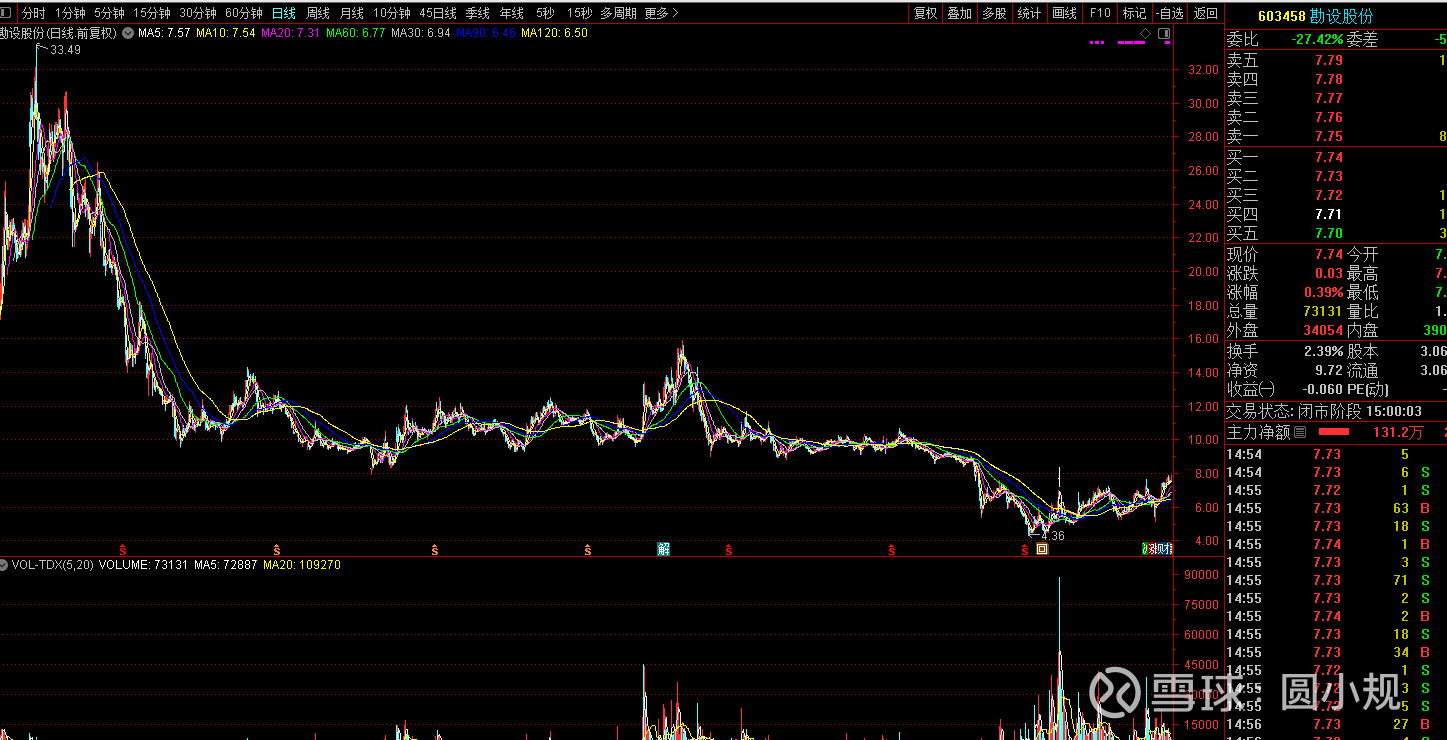 今天和大家聊一下勘设股份,圆小规的组合中继中化岩土之后,慢慢稳定到了勘设股份,一直持有,这个也没有定目标收益,但是肯定要等其回到原来的大平台之上,至于什么时间,不得而知,不过作为散户,我们恰好多的就是时间。