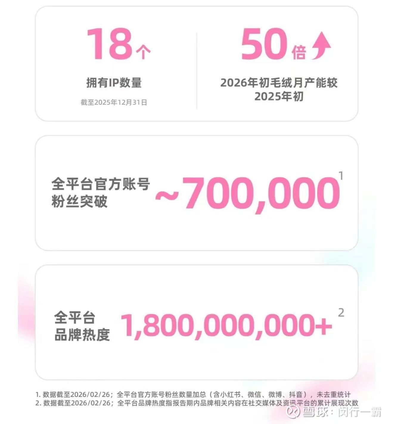 乍一看,会感觉数据很不错,单季度卖了1.77亿,环比高增39%。拥有18个自有ip,ip矩阵已经建立。制造端毛绒产品增长50倍,供应链问题也解决了。粉丝、热度数据都很不错。