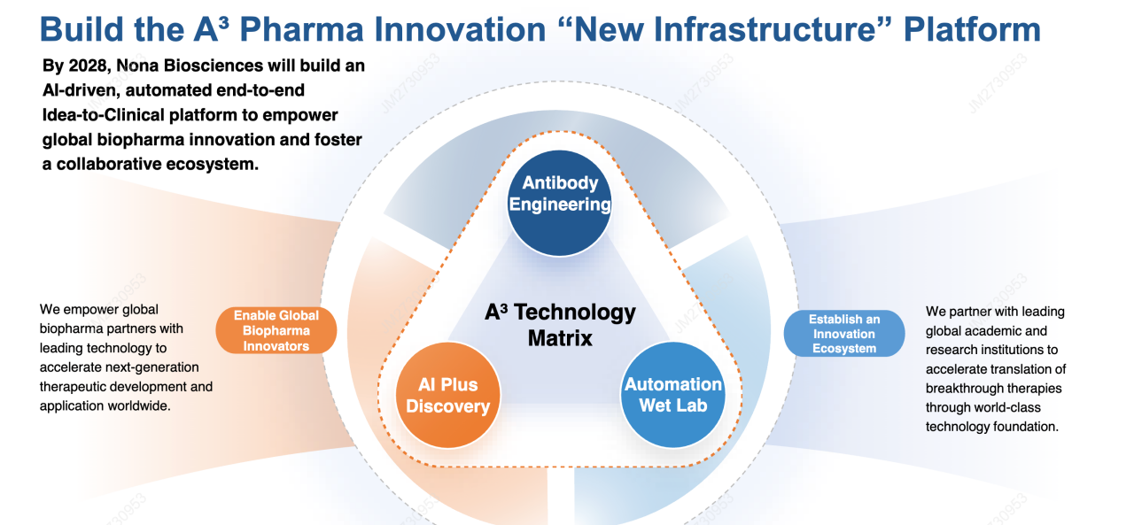和铂的AI雄心市场其实不会陌生,是基于其子公司诺纳生物打造的A³战略(Antibody Engineering × AI × Automation)。