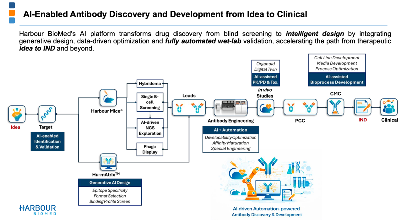 随着AI能力越来越强,我觉得对和铂医药的定位也需要不断重新审视。过去,基于Harbour Mice的持续迭代和进化,和铂医药其实是全球抗体药物开发的“新基建”,属于绕不开的合作伙伴。
