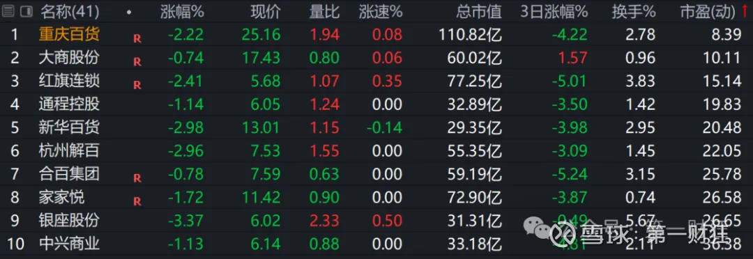 1. 从一般零售行业看,估值最低。