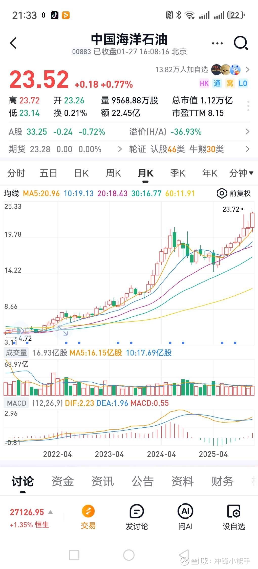 看$中国海洋石油(00883)$ 的走势,已经月线九连阳,看似牛气冲天。