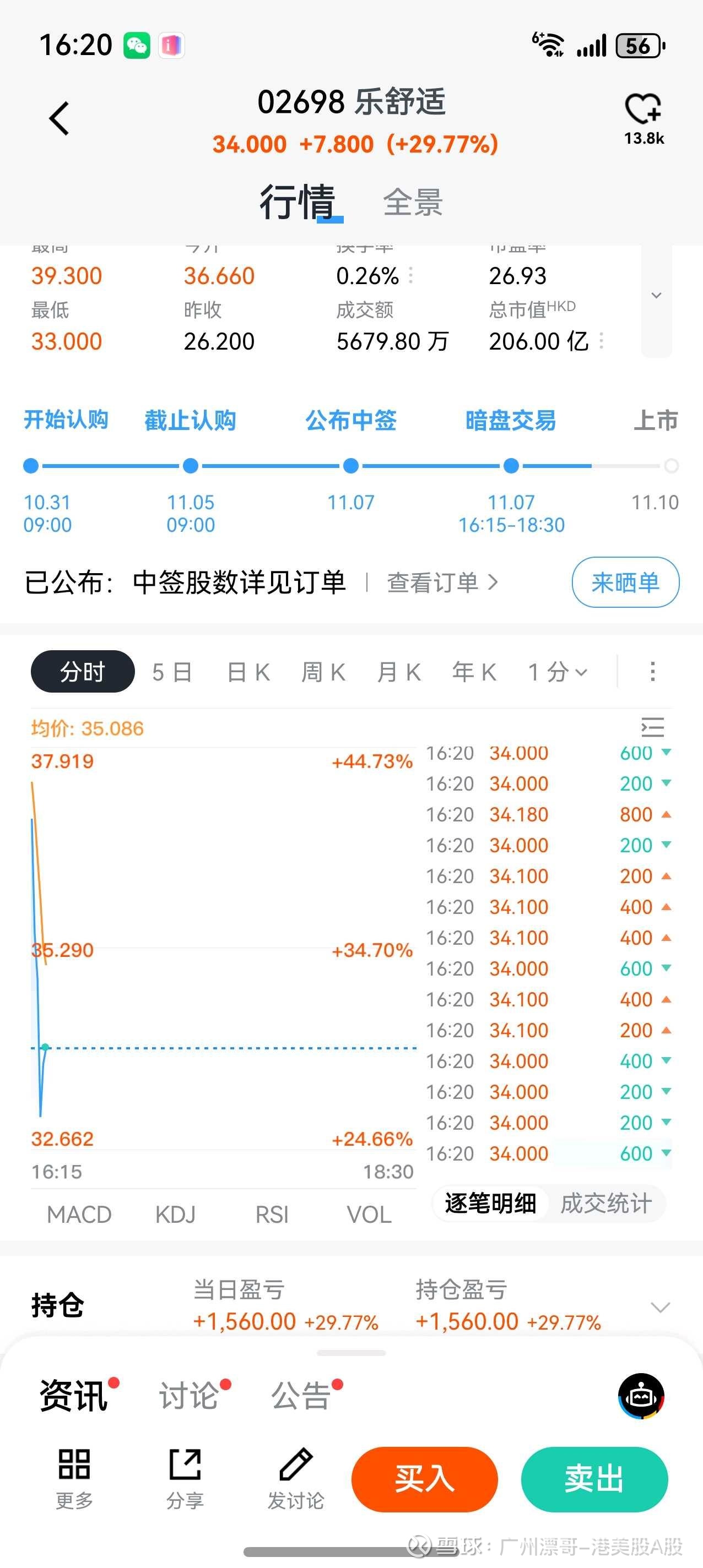 吃肉啦,乐舒适,港股打新,[愉快][加油]觉得明天开盘,还会涨[加油][愉快]