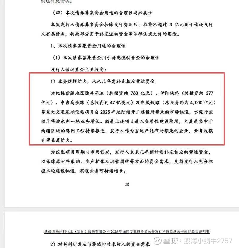 你敢信吗?在传统行业去产能去杠杆的当下,青松建化竟然还在加产能,发科创债10亿元加杠杆!这是因为未来三年,新疆的独库高速,中吉乌铁路,新藏铁路,甚至是水泥用量堪比雅鲁藏布江水电站的“乌喀高铁”,将为青松带来确定性的增长!