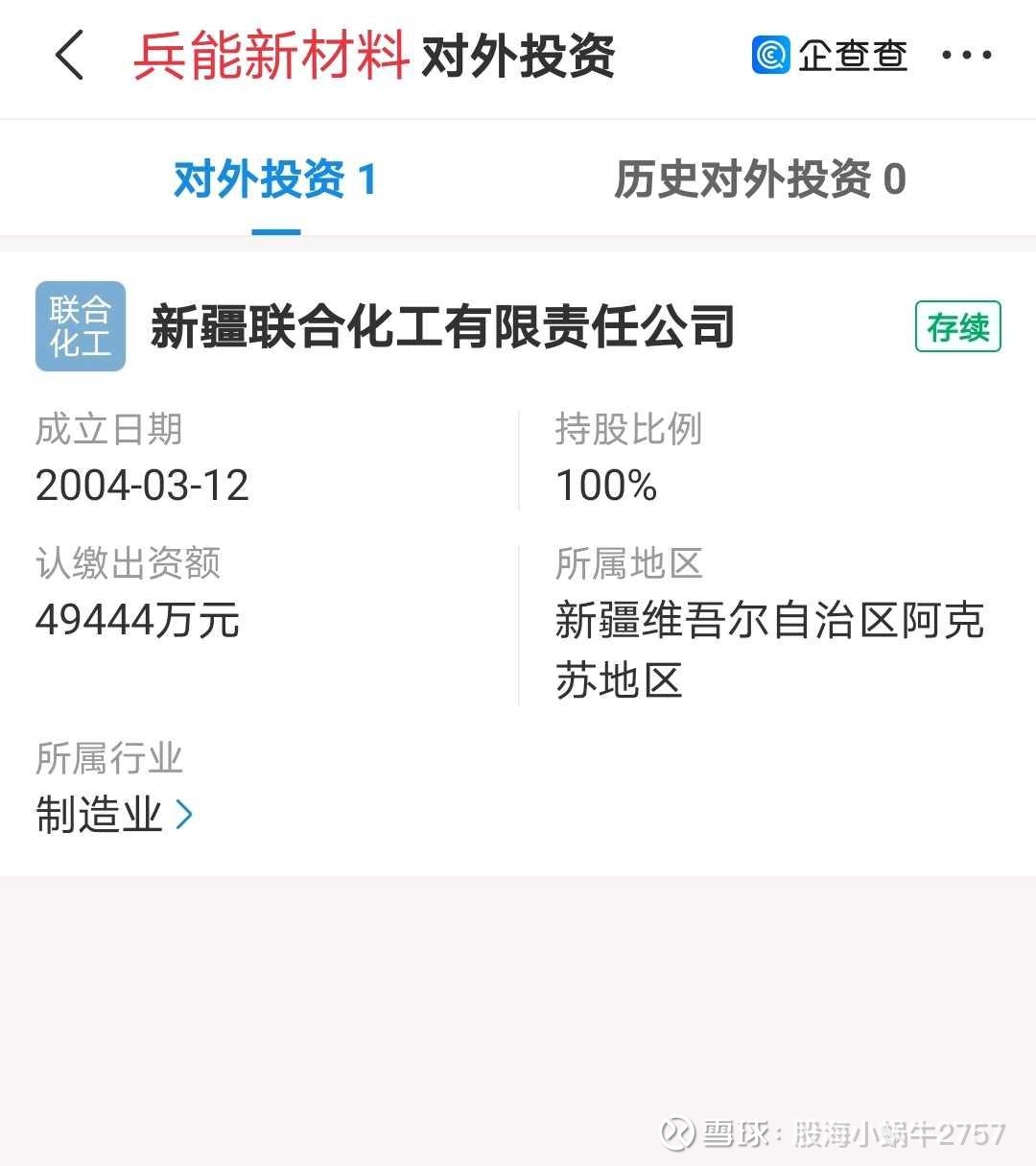 然后是兵能新材料公司,旗下就一家联合化工。