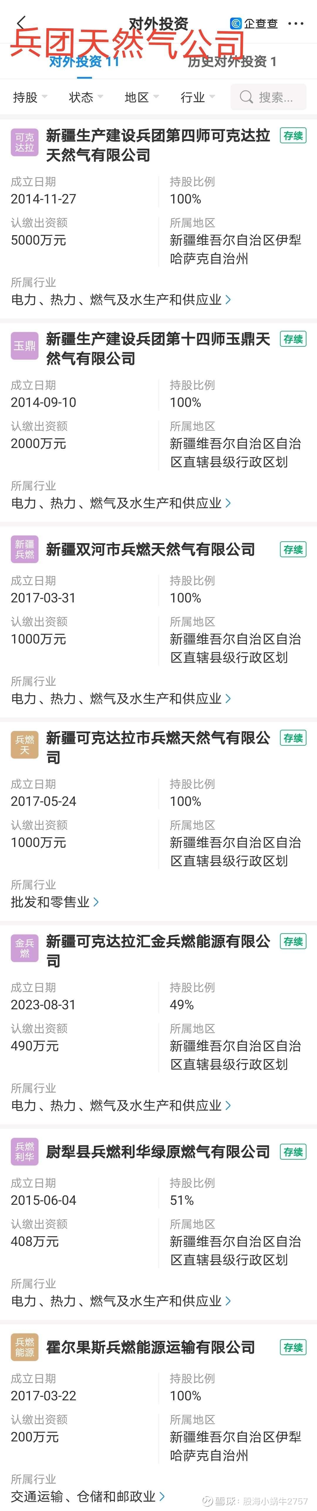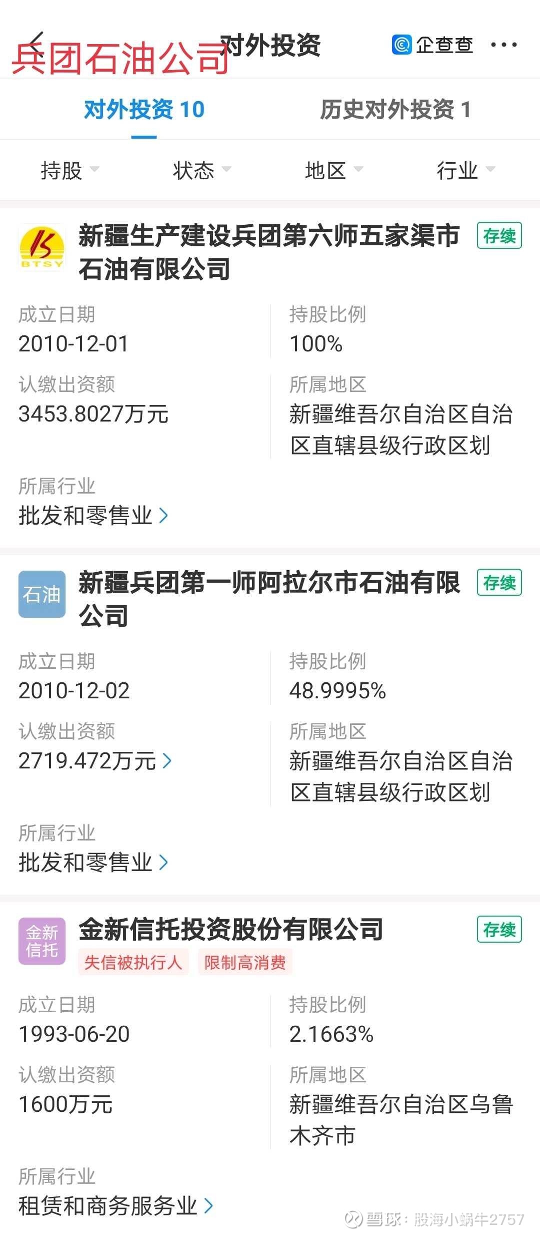 兵团石油公司,已经注销了好几家子公司。