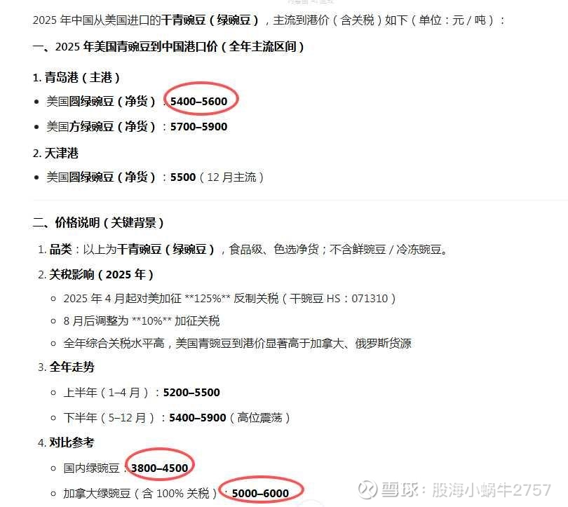 通过豆包分析,2025年国内绿豌豆价格4000元/吨,而加拿大含关税后价格是5500元/吨,如果不加征关税价格是2800元/吨,也就是说,假设2025年甘源采用了国产替代的方案,那么2026年甘源重新采购加拿大的豌豆后,豌豆采购成本会下降30%左右。2024年甘源豌豆的采购成本是2.83亿元,那么相应推测2025年豌豆的采购成本至少会突破3.1亿元,下降30%就是约1亿元!