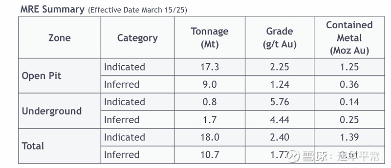 二、公司在2025-03-24发布了初始资源评估报告,合计2百万盎司黄金资源量: