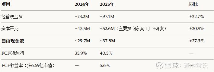 自由现金流转化率偏低的主因是公司正处于产能扩张期(东莞工厂建设),属于成长期投入。