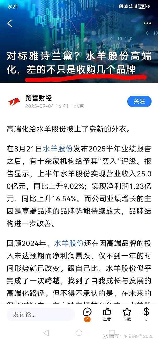 $水羊股份(SZ300740)$ 小黑文来了,既然差的不是收购几个品牌,那就再收购几个品牌,水羊是唯一敢孵化几个高端还保持一定利润的企业。近期国内的一些收购全是往下卷(毕竟逸仙电商孵化科兰黎亏损60亿➕的例子还历历在目),只有水羊敢往上发力,至于利润,茅台利润会比二锅头低吗?无非时间问题了。