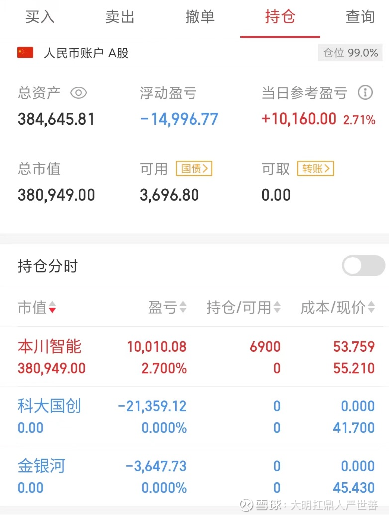 完了,全完了,彻底完了,昨天有一个机会,我没把握住,把$科大国创(SZ300520)$ 卖飞了。还是亏2w卖的,今天一看,晕过去了。追了$本川智能(SZ300964)$ 不求连板,明天10个点溢价可好啊?