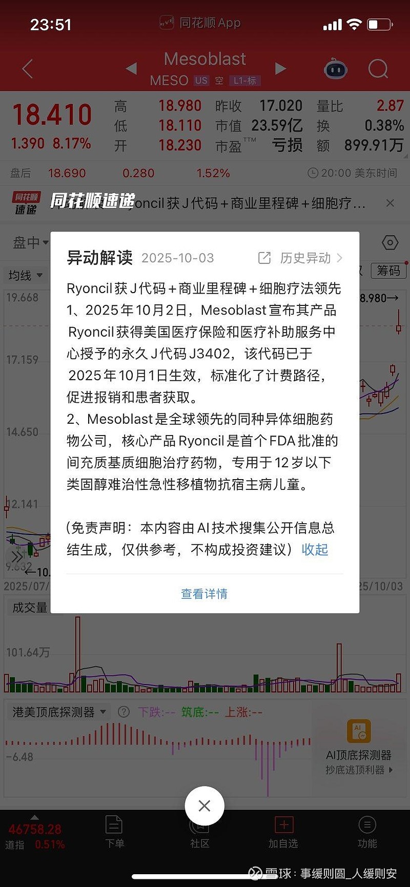 10.1号全球首款间充质干细胞药物 Ryoncil 获美国医疗系统授权代码,纳入美国医保,标准化了计费路径,促进报销和患者领取,细胞行业迎来里程碑事件!