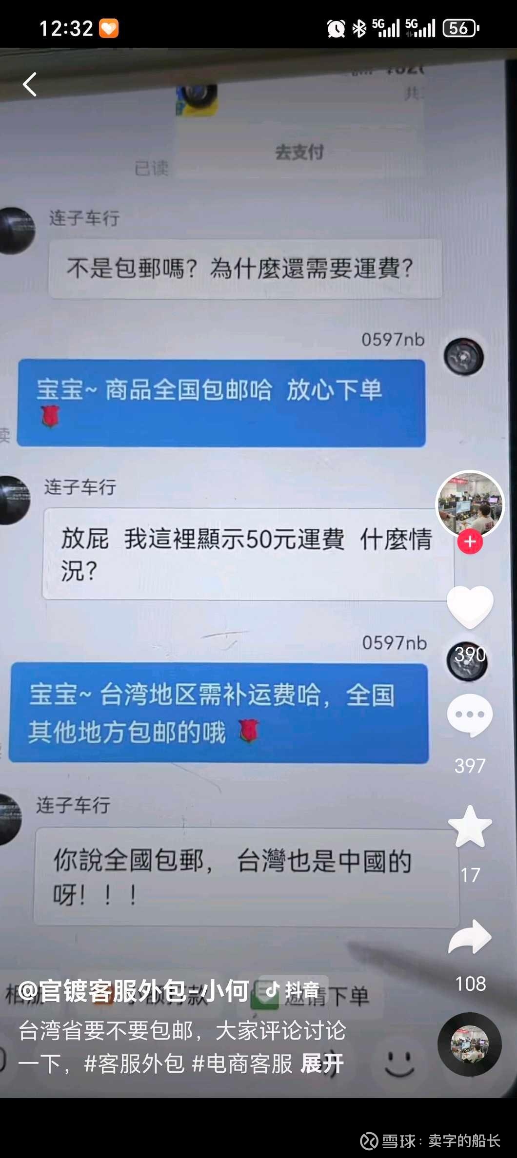 你看看台湾的同胞们都怒了,你啥意思?全国包邮,偏给我收邮费,你还想不想统一,想不想融合了😂😂😂