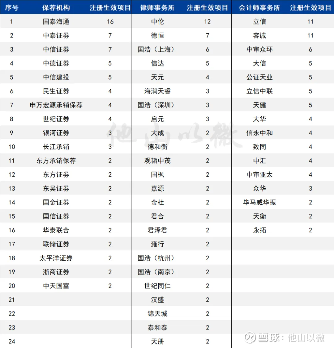 以下是中介机构“小额快速”定增已注册生效的项目量排行榜(仅统计2单项目以上):