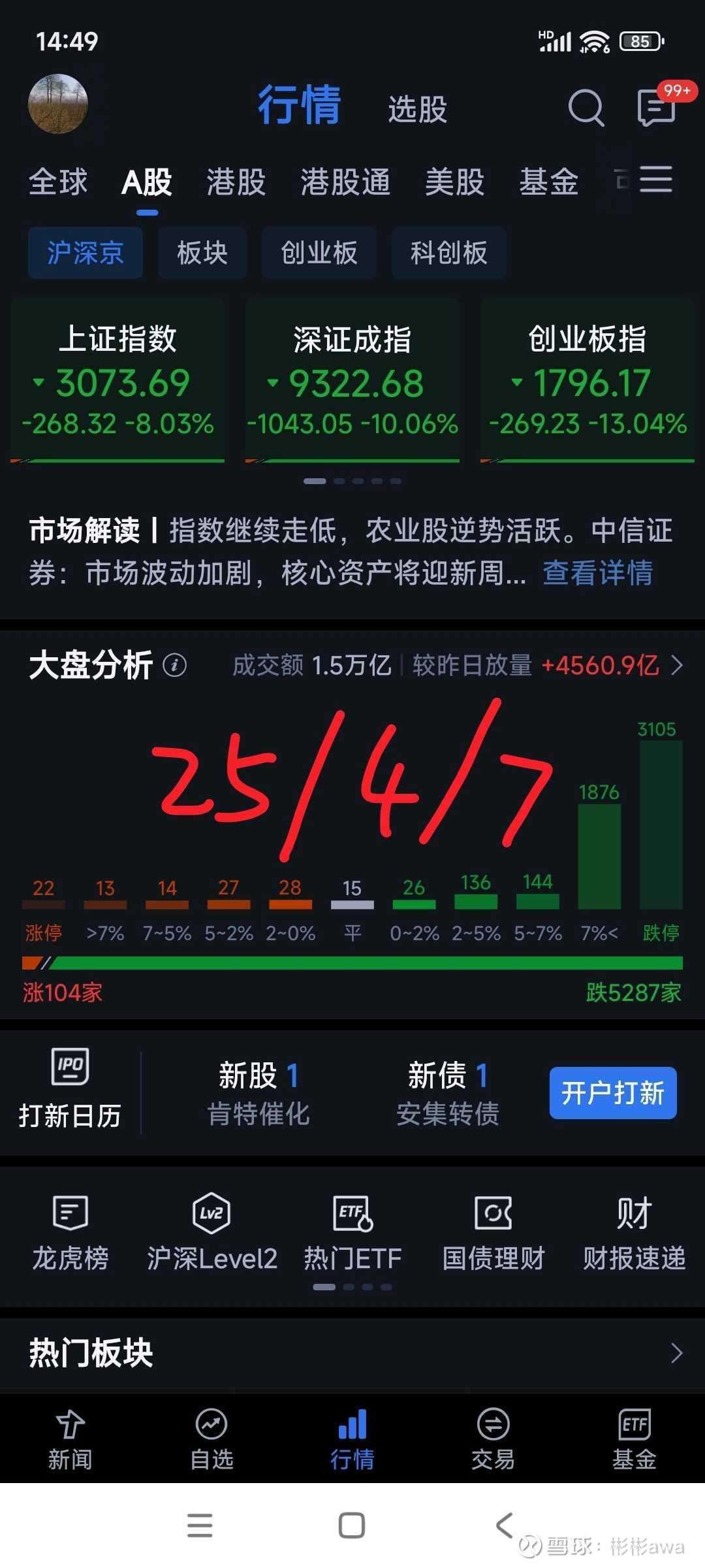 今年上半年有一个交易日,比较特殊,3105家跌停。