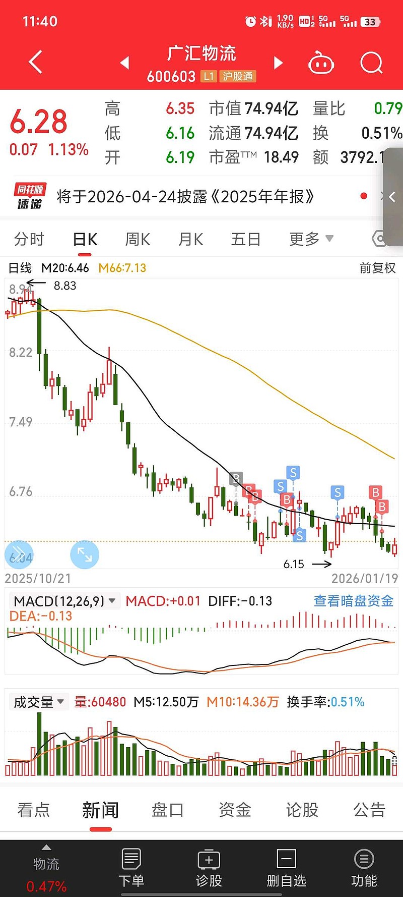 $广汇物流(SH600603)$