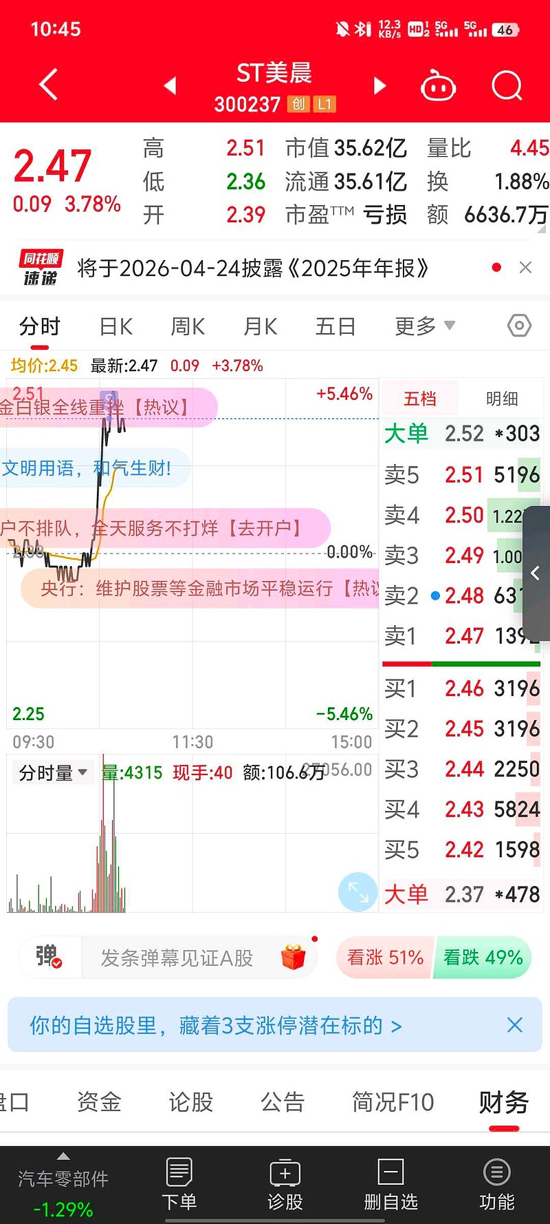 $ST美晨(SZ300237)$