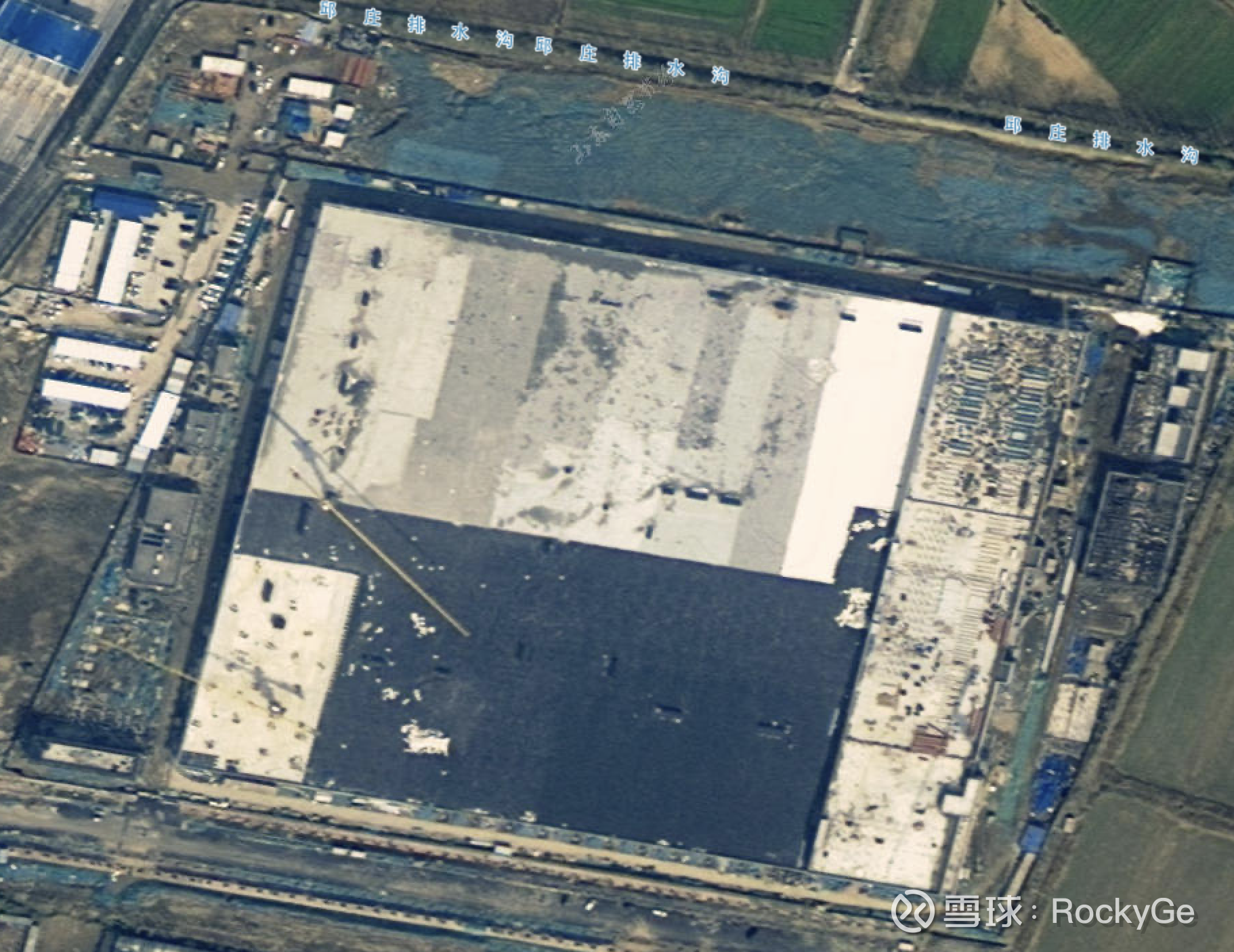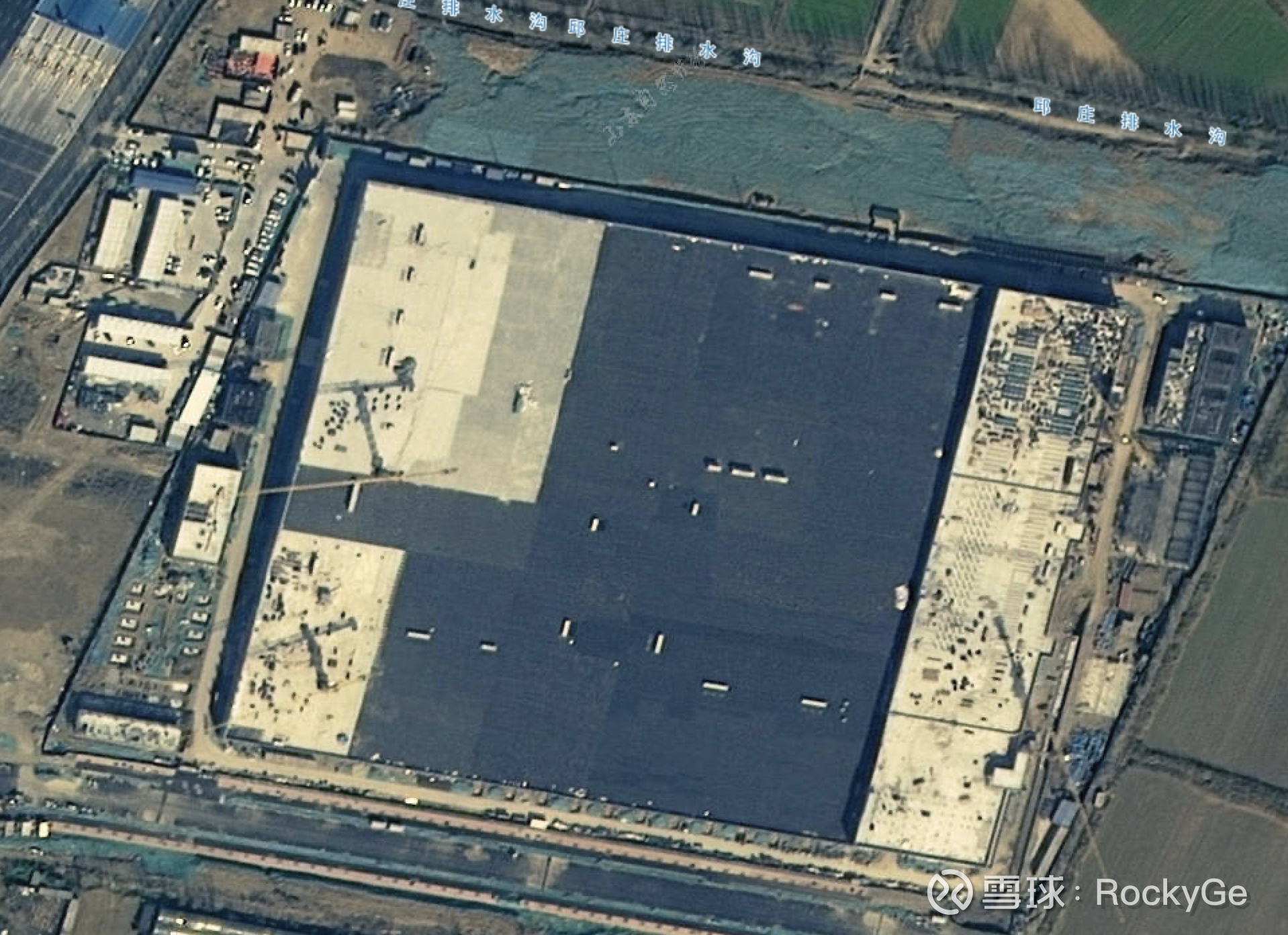 2025年10月14日(最新卫星照片,可以发现厂房整体完善,路边道路已开通,十字路口斑马线已清晰可见)