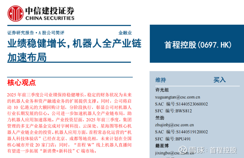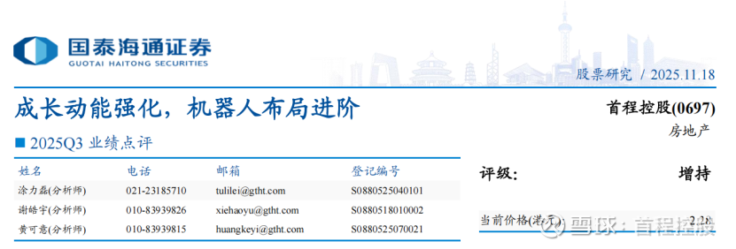 多家券商在三季报后同步发布积极研报,显示市场对首程控股“稳健基本盘+科技增长线”的高度认可。随着机器人生态布局持续深化、全国体验店稳步拓展、产业基金多点开花,首程正在从“基础设施运营商”向“机器人科技生态运营平台”加速演进。