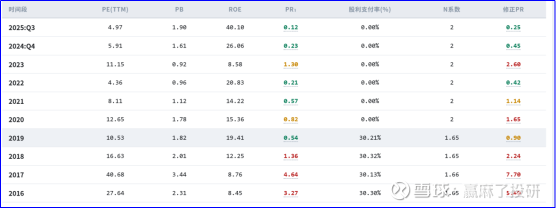 历史估值对比:2017 年 修正PR 最高7.7,当前跌至 0.29(发生了什么?)