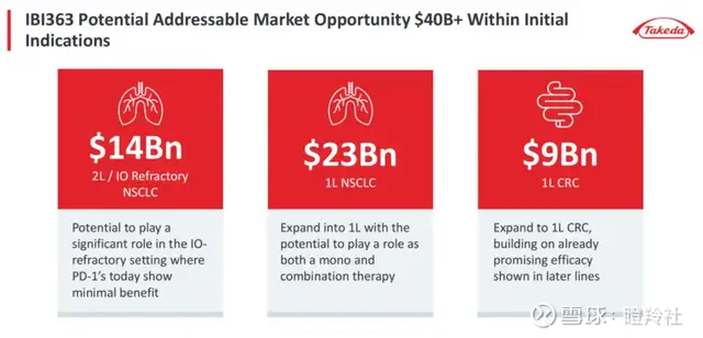 结语:武田正在用真金白银和明确的宏大全球临床开发计划来为信达生物IBI363的全球市场潜力进行背书,这笔交易显然是双向奔赴的双赢之举,同时这项合作将成为信达生物全球化的重要落子,同时信达生物IBI363一揽子资产有望在下一代肿瘤免疫“IO+ADC”浪潮下让武田的肿瘤业务插上腾飞的翅膀,让我们拭目以待。@今日话题 @雪球专刊 @雪球达人秀 #肺癌是PD-1最大的适应症# #PD-1/VEGF双抗# #信达生物# $信达生物(01801)$ $武田制药(TAK)$