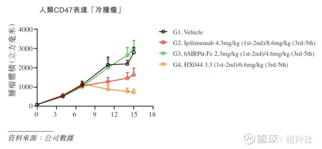 3)临床前/同靶点体外数据初露峥嵘:低剂量的HX044抗肿瘤能力较Y药更强,治疗窗口也更广,并且在CD47表达的热肿瘤、冷肿瘤模型中都具备强抗肿瘤活性。另外,北大傅阳心团队一项anti-CTLA-4/SIRPα体外试验也证明了这一策略的安全性潜力。