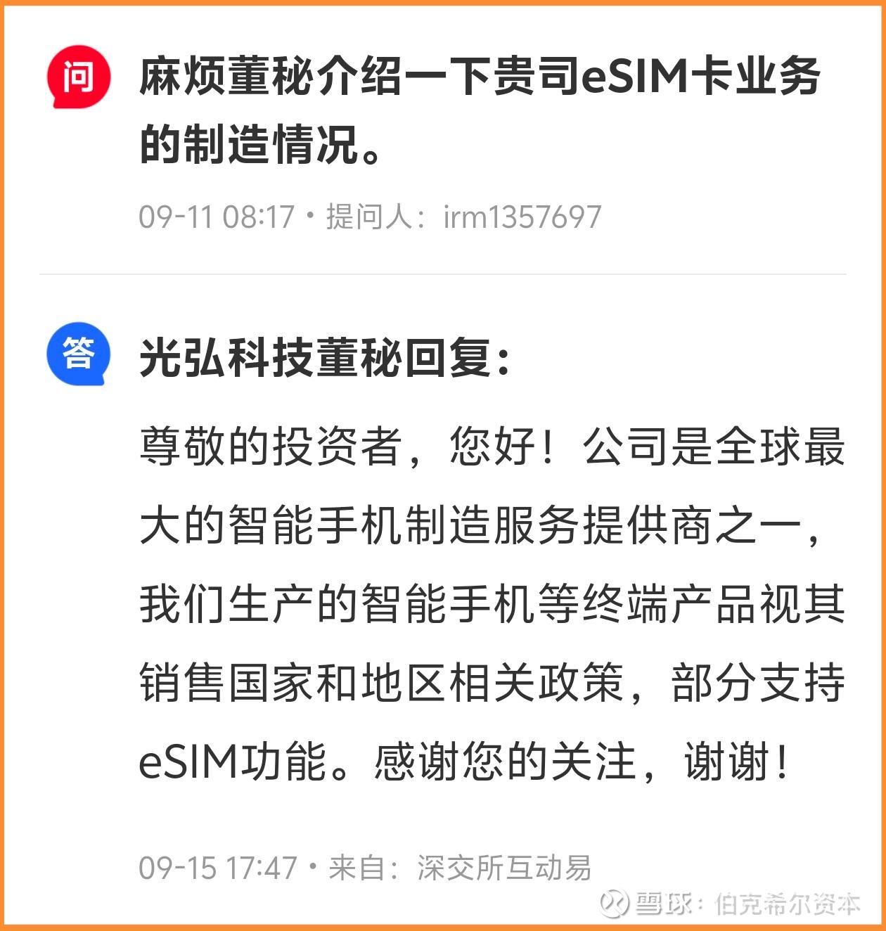 关于手机业务,我们这里补充一点:今年最红火的新一代手机 eSIM 功能,光弘的产品是有的。看下面截图(这个夏天 eSIM 概念涨翻天的时候市场不知道为啥也是选择性眼瞎没看到光弘)。