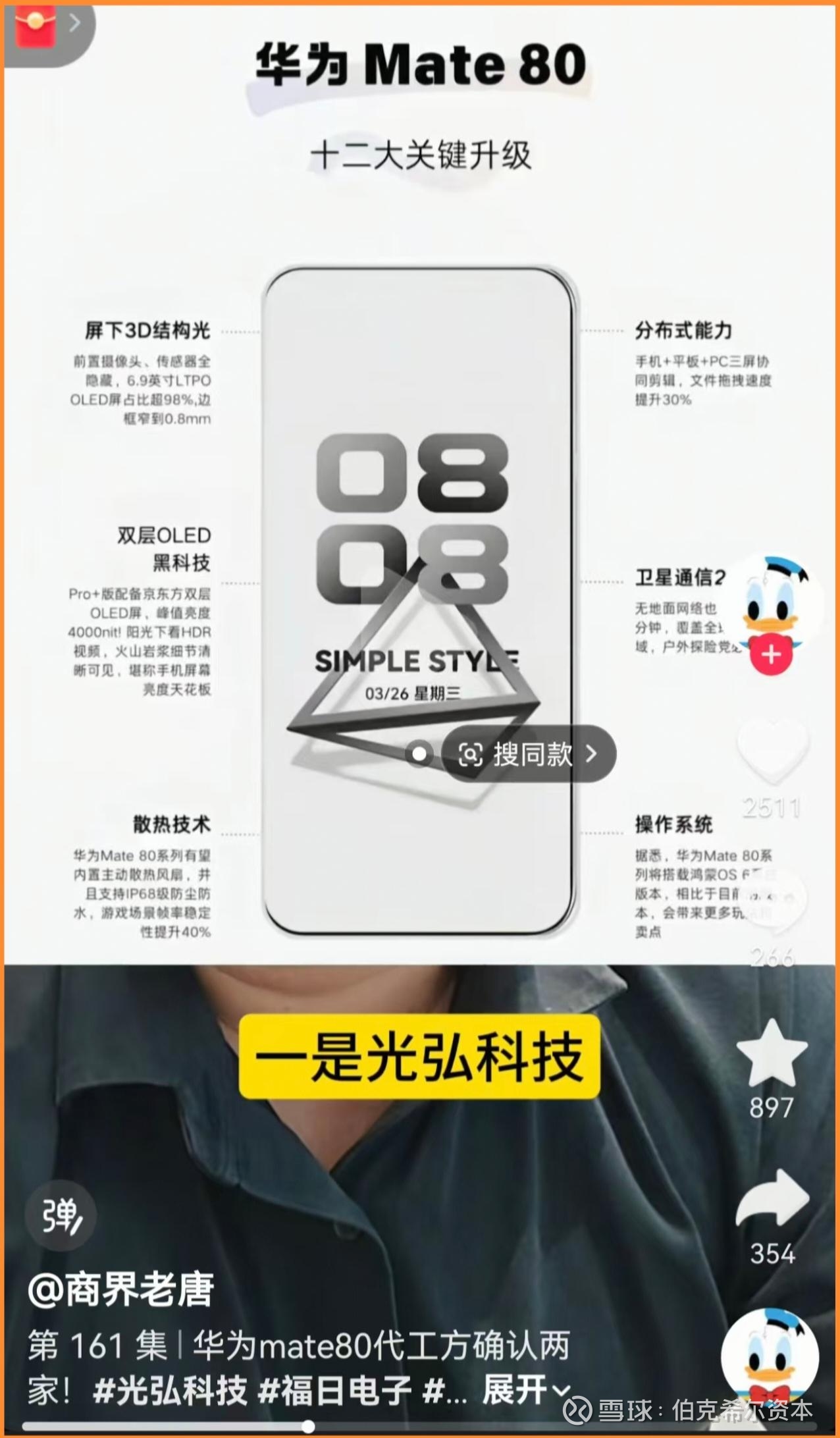 关于即将到来的宇宙最强手机 Mate80 以及光弘科技的领衔主演,大家可以再看看下面这个视频: