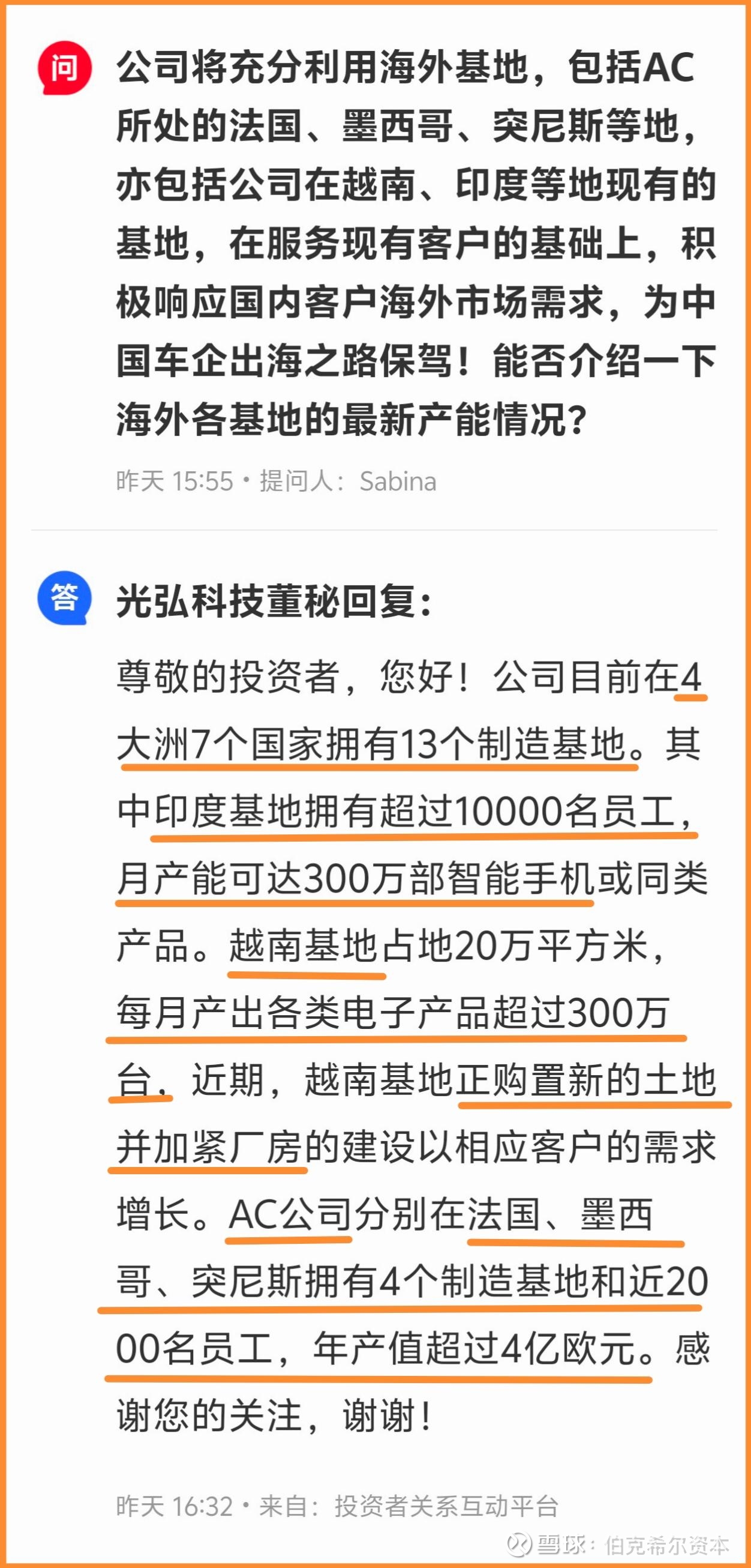 另一个高速增长点就是新并购的法国第一大汽车电子制造商 AC 公司(All Circuits S.A.S.)。看下面几张截图里董秘关于这部分对投资者的问题的回答。