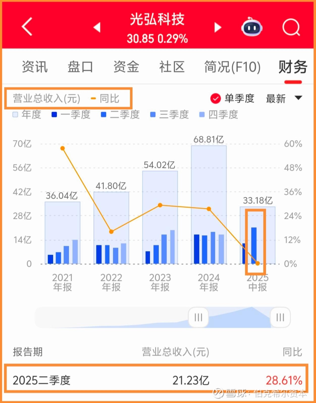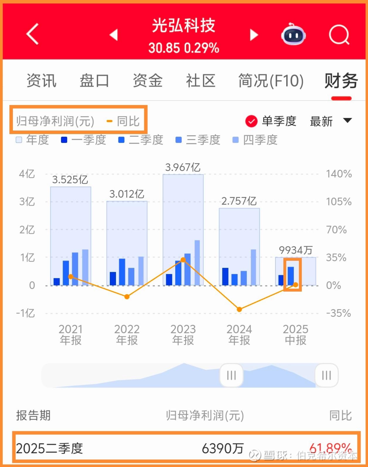 综合以上几点,光弘的手机电子\整机(特别是华为和小米畅销旗舰手机)、汽车电子\配件、海外业务、通信设备、AI服务器、激光雷达产品线等全都进入高速增长期。三、四季度乃至明年的营收同比增速将会持续上升,带动净利润更加高速增长。光弘的业务起飞势头其实在半年报里已经显山露水了!只不过这个夏天市场上几乎所有人的目光都被半导体、军工和固态电池吸引过去,没人去注意拆解分析,都还只是看到那个被一季度暂时萎靡拉低的半年总和数字。