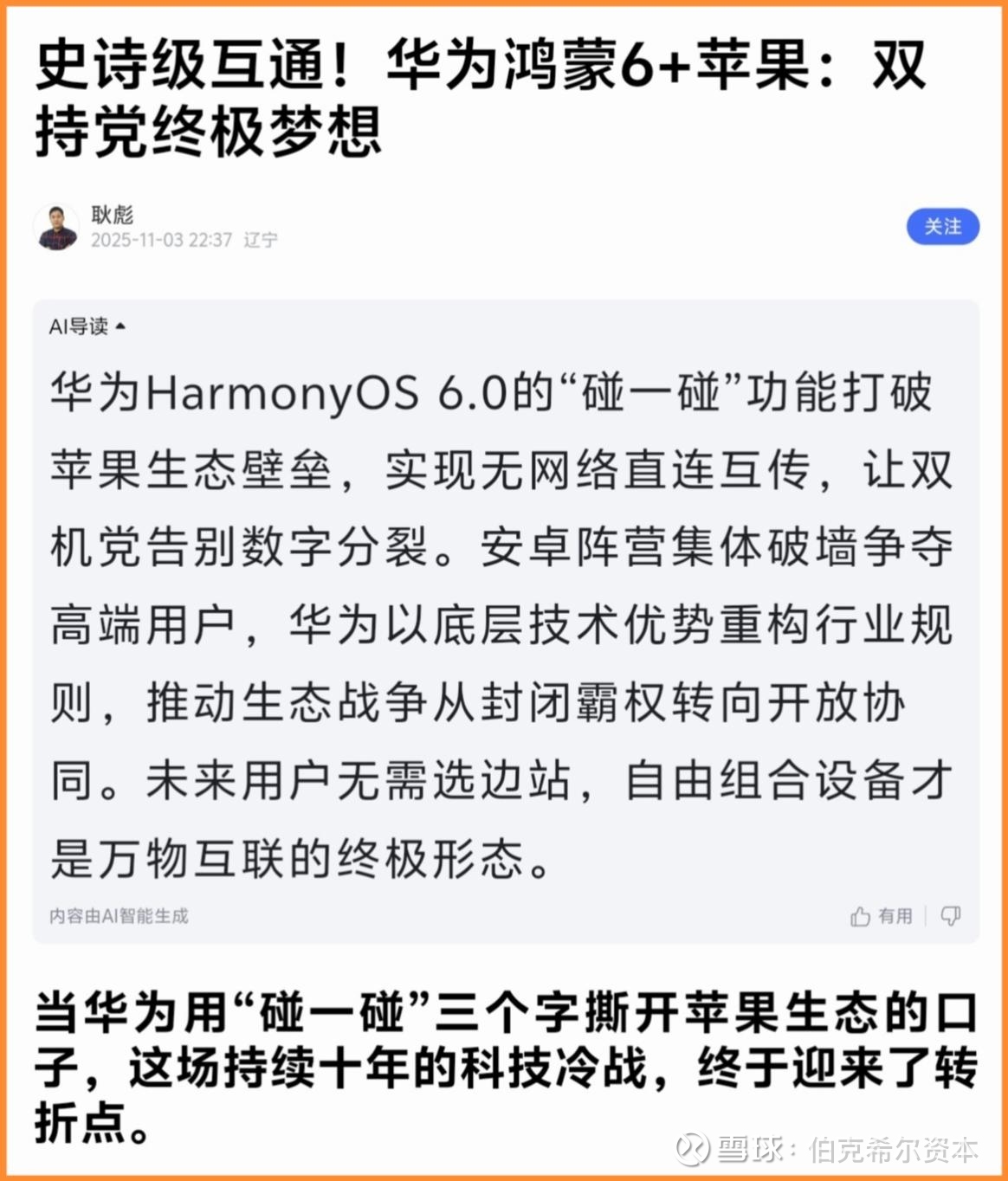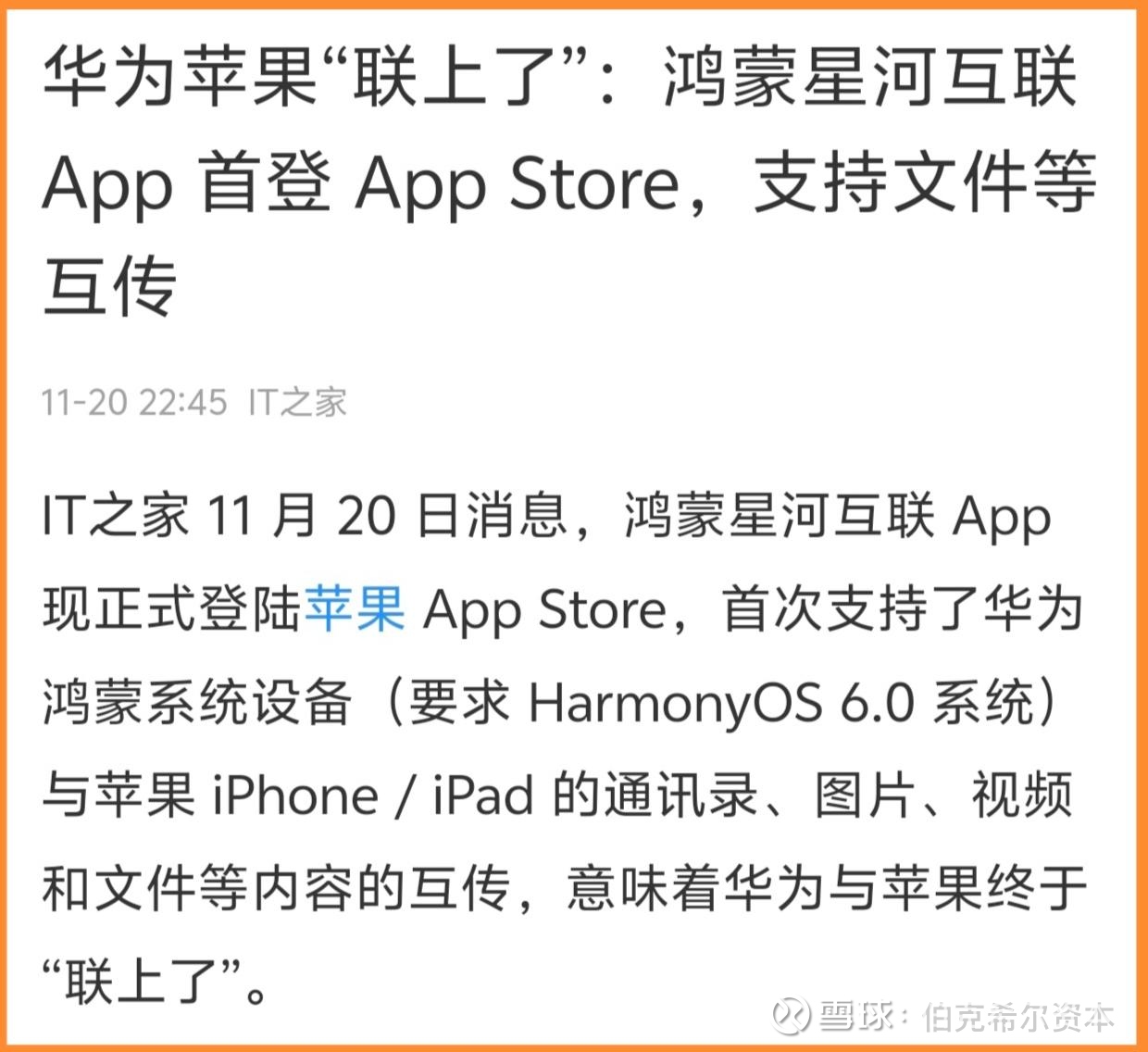 很有意思的,仿佛意识到华为已经势不可挡,封锁无济于事,强强联手更加有好处,可以更快做大整个全球 AI 手机蛋糕。时隔几年之后漂亮国国宝手机巨头,华为的最大竞争对手苹果竟然在发布会前夕宣布和华为重新连接上了,大家细细品味: