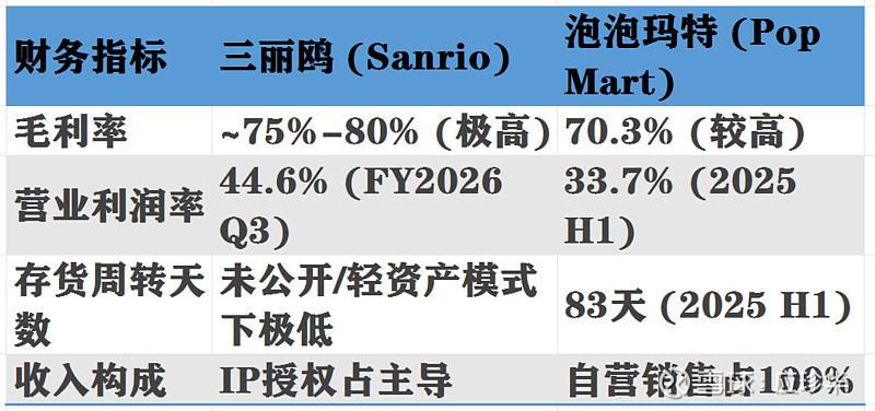 核心洞察:三丽鸥的高估值源于其成熟的平台属性和稳健的现金流;而泡泡玛特的高估值更多反映了市场对其成长潜力的预期,需警惕其转型过程中的不确定性。投资者应密切关注运营效率指标的变化。