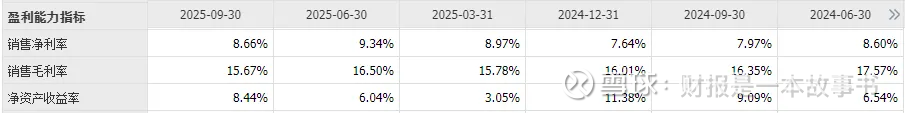 不过公司的净利率表现出色,2025年前三季度净利润8.66%较去年同期7.97%小幅提升0.69%,表明公司管理成本控制良好,经营优秀。