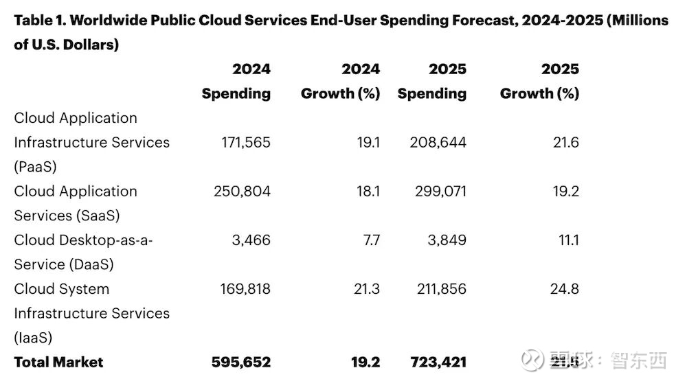 SaaS已成为企业数字化的标配,企业每年投入大量预算购买SaaS系统,Gartner曾预测,2024年全球终端用户在SaaS上的支出达到2508亿美元,2025年预计将接近3000亿美元,SaaS仍是公有云支出的最大板块之一。